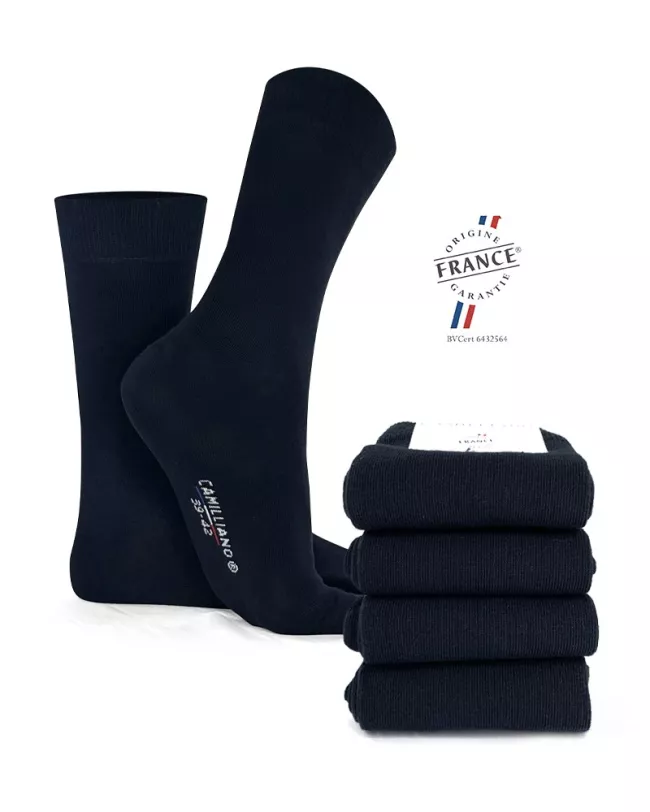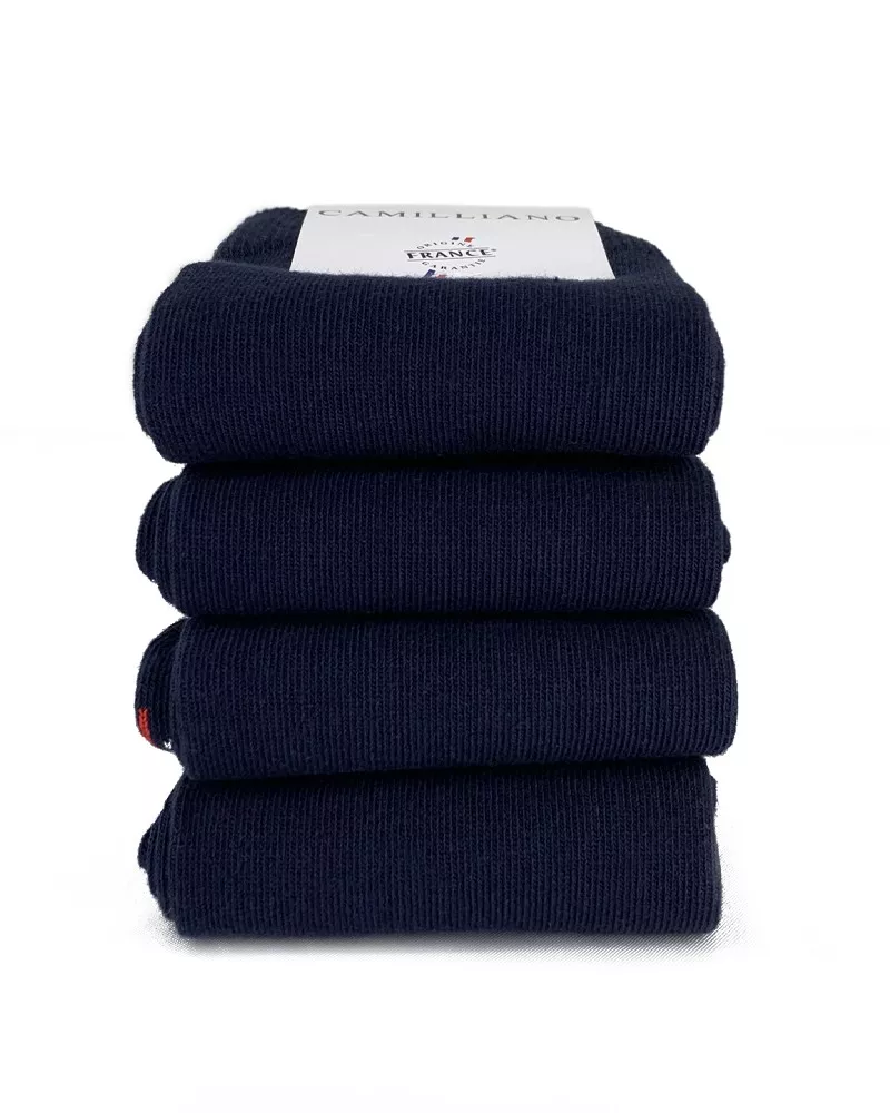 Prévenant ou étourdit à la recherche de vos chaussettes sous le lit ou au fond d'un tiroir ? Voici la solution pour ne plus vous demander où se trouvent vos chaussettes. Nous vous proposons un pack de 4 paires de Chaussettes bleu marine en Coton bio fabriquées en France.