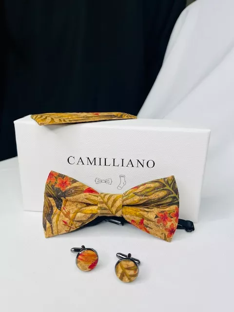 Offrez à votre look un soupçon d'excentricité avec notre coffret en liège tropical. Composé d'un nœud papillon, de boutons de manchette et d'une pochette assortie, chaque élément de ce set a été minutieusement fabriqué à la main en France pour garantir une qualité irréprochable.